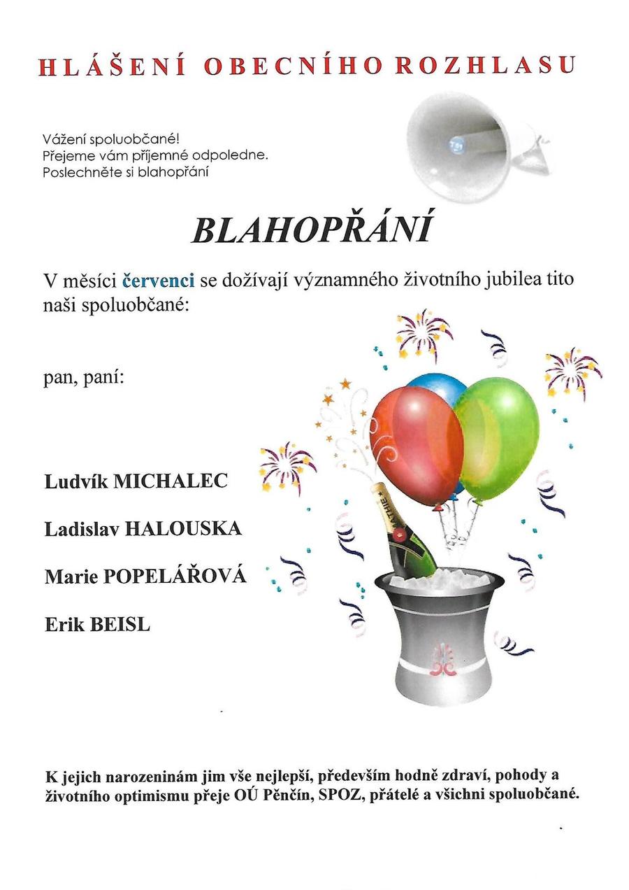 Úvod > O obci > Aktuality > Blahopřání jubilea červenec 2022