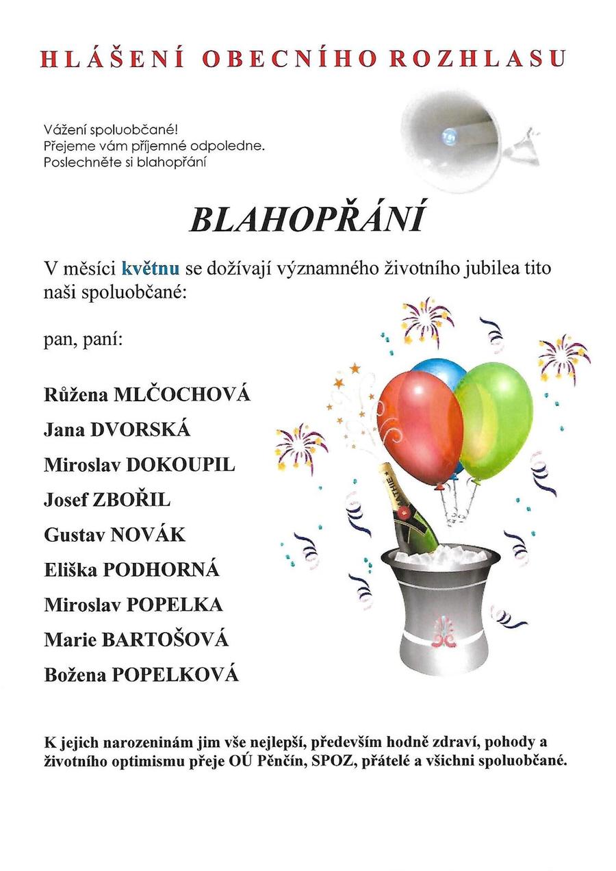 Úvod > O obci > Aktuality > Blahopřání jubilea květen 2022