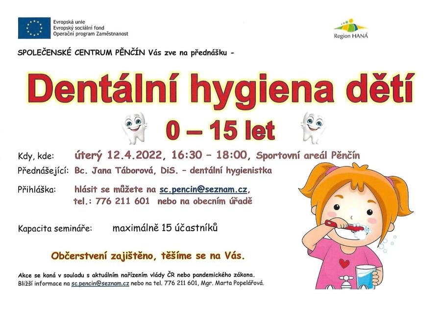 Úvod > O obci > Aktuality > Dentální hygiena dětí 0 - 15 let 12. 4. 2022 SA Pěnčín