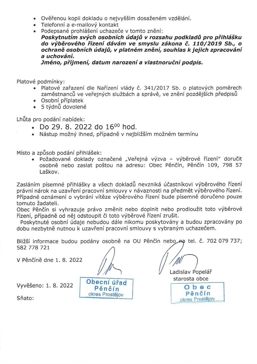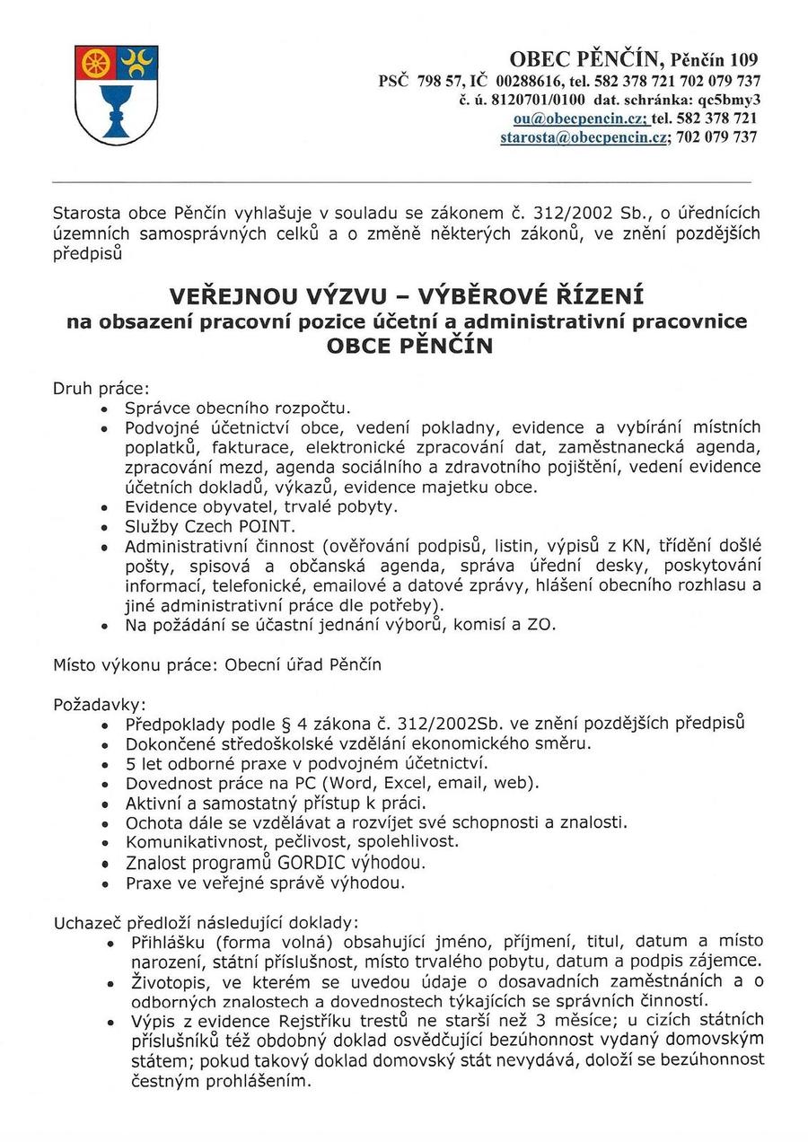 Veřejná výzva - výběrové řízení účetní obce Pěnčín_0001.jpg Veřejná výzva - výběrové řízení účetní obce Pěnčín_0002.jpg