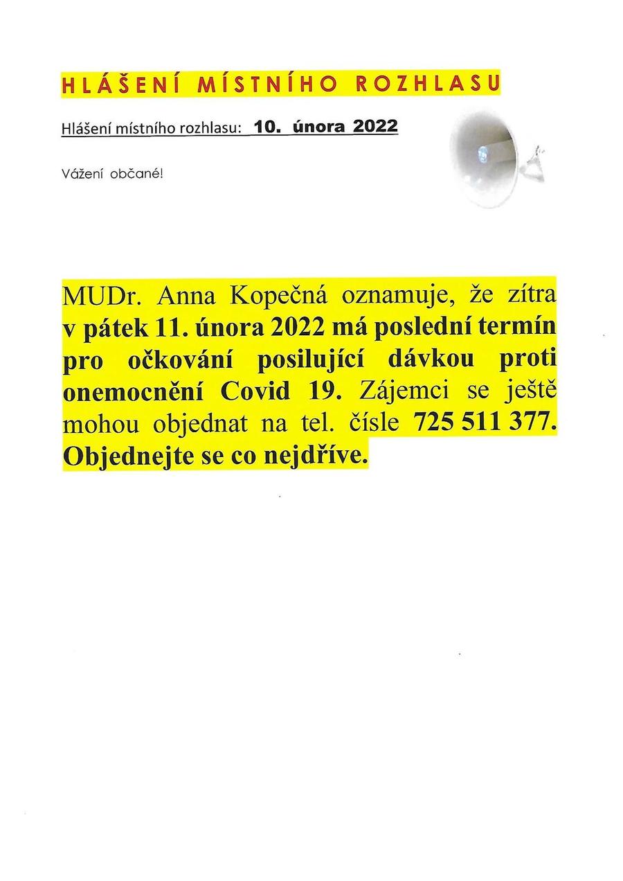 Úvod > O obci > Aktuality > Oznámení MUDr. Kopečná Anna - očkování posilující dávkou